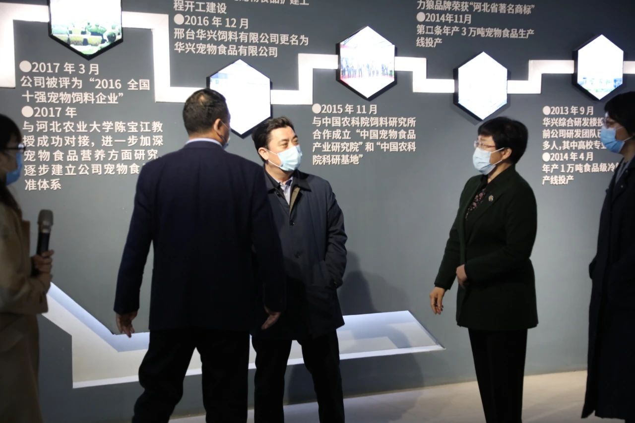 參觀指導過程中,統戰部部長冉萬祥與冀葉軍董事長親切交談,了解生產復工過程中遇到的問題。冉萬祥了解華興寵物食品的發展歷程