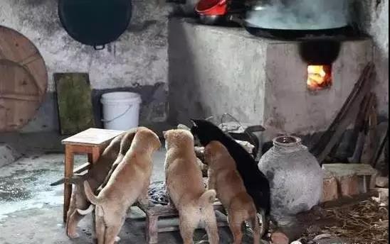 估計是天氣太冷了,主人就生起了火爐,然后汪們就聚在一起烤火取暖。