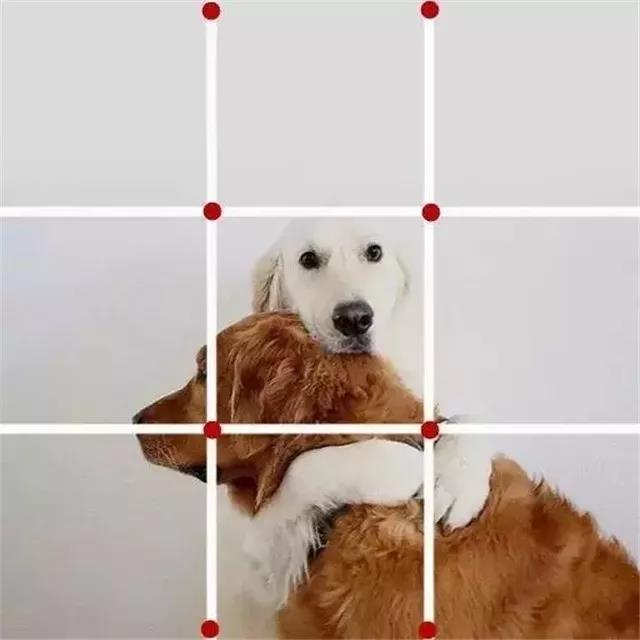 比如:三分法,跟九宮格很像,是將畫面從豎線條方向分成三份,把寵物放在中間的框線里,突出寵物主體。