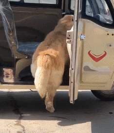 網友帶自家金毛坐三輪蹦子,下車的時候這貨竟然恐高了。